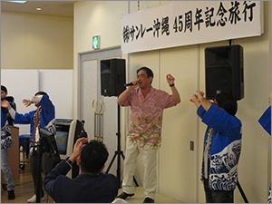 カラオケタイムでは、わたしはBEGINの「三線の花」を歌いました。沖縄の心を歌い上げたハートフルなナンバーです。歌い終わると盛大な拍手が鳴り響き、アンコールが起こりました。わたしは基本的に宴会で2曲は歌わない主義なのですが、いつまでもアンコールが止まないので、仕方なく歌うことにしました。結局、北島三郎の「まつり」を歌いました。途中、社員のみなさんと握手をしながら会場を回りました。すると、「法令試験合格おめでとうございます!」という横断幕が登場して、驚くとともに胸がいっぱいになりました。その後、そのままカチャーシー大会になりました。沖縄に限らず、社員旅行に行くたびに、会社の仲間がますます好きになります。やりがいのある仕事と素晴らしい仲間に恵まれ、わたしは本当に幸せ者だと思います。