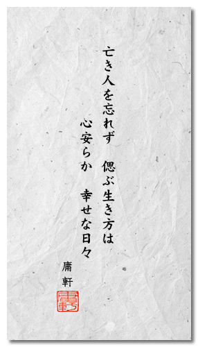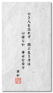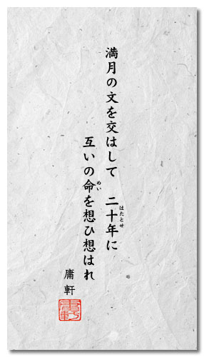 庸軒は、私の歌詠みの雅号です。福島県三春の偉人に佐久間庸軒という方がいたことを知り、私の本名である佐久間庸和と一字違いであることから不思議な因縁を感じ、雅号としました。なにぶん商売人の身で、なかなか花鳥風月を詠んで風雅の世界に遊ぶというわけにはいかず、もっばら会社や仕事に関する話材で歌を詠んでおります。「言霊」つまり言葉の持つ不思議な力のせいか、歌を詠みだしてから事業も順調に進んでいるような気がしております。